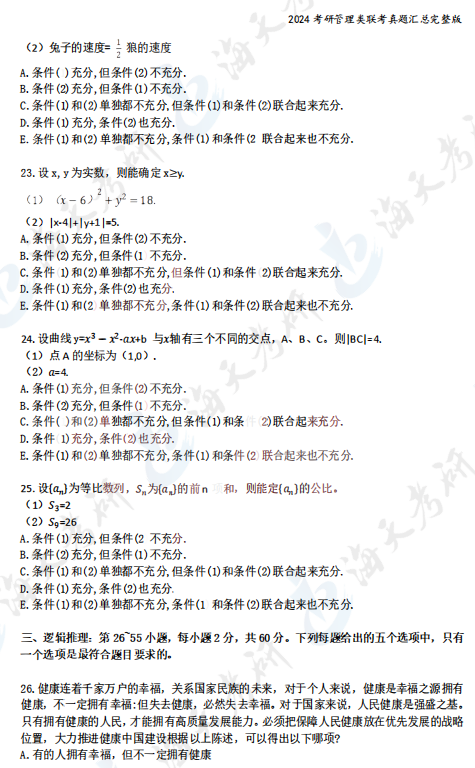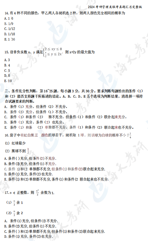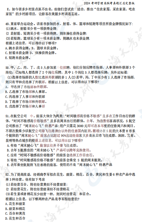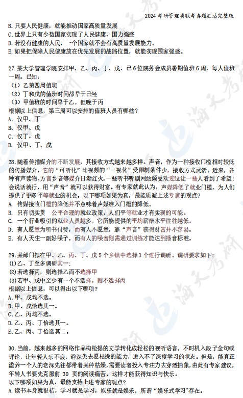 2024考研管理类综合能力真题汇总完整版